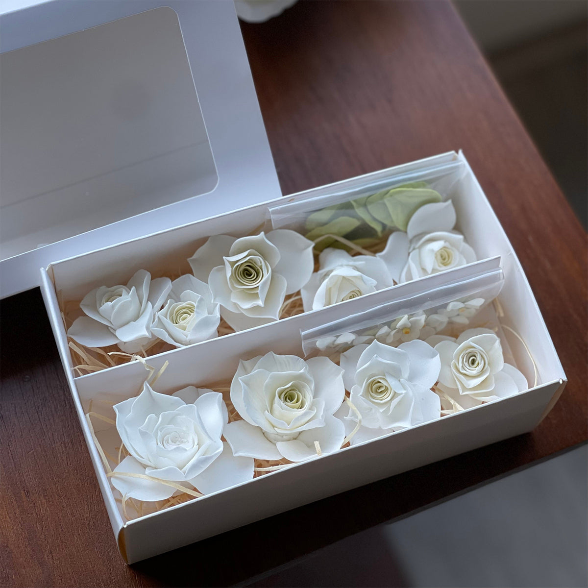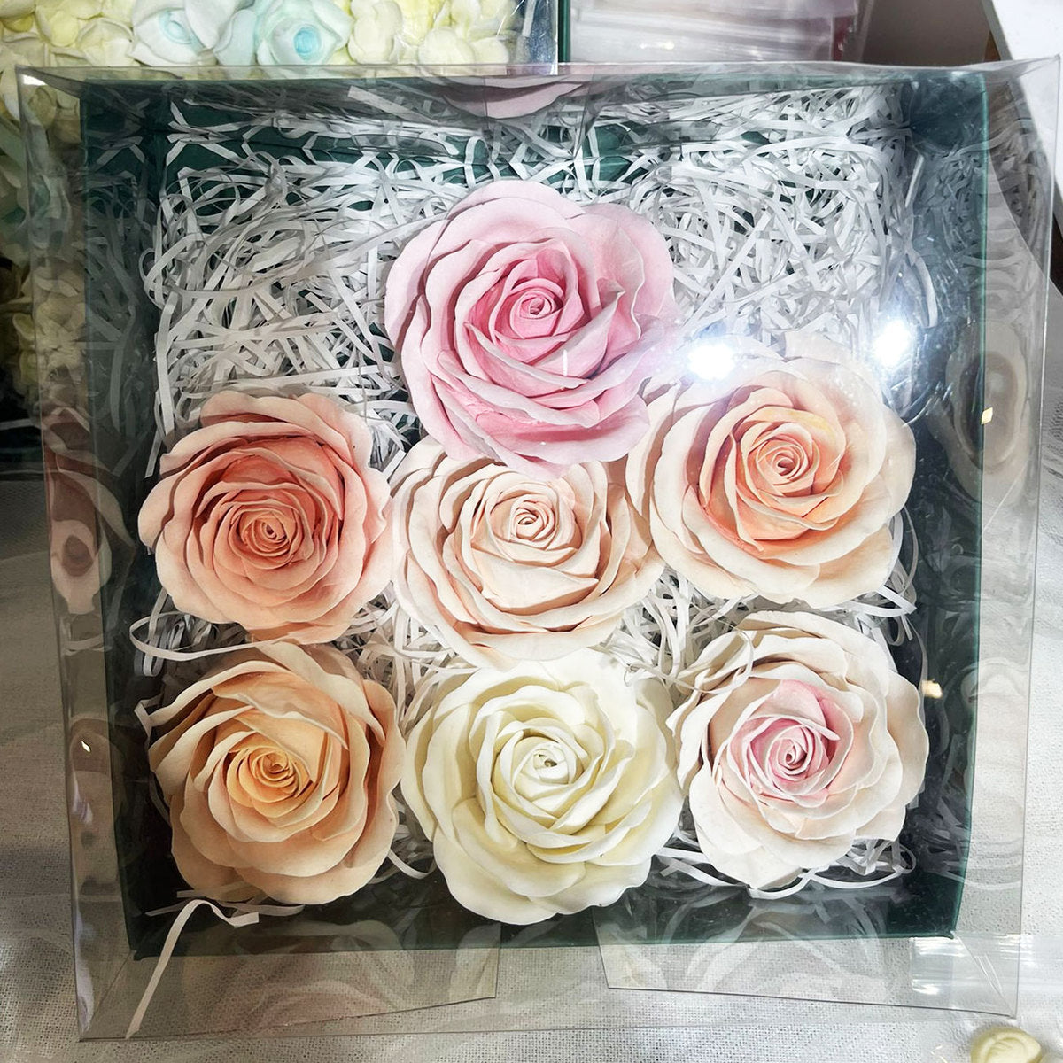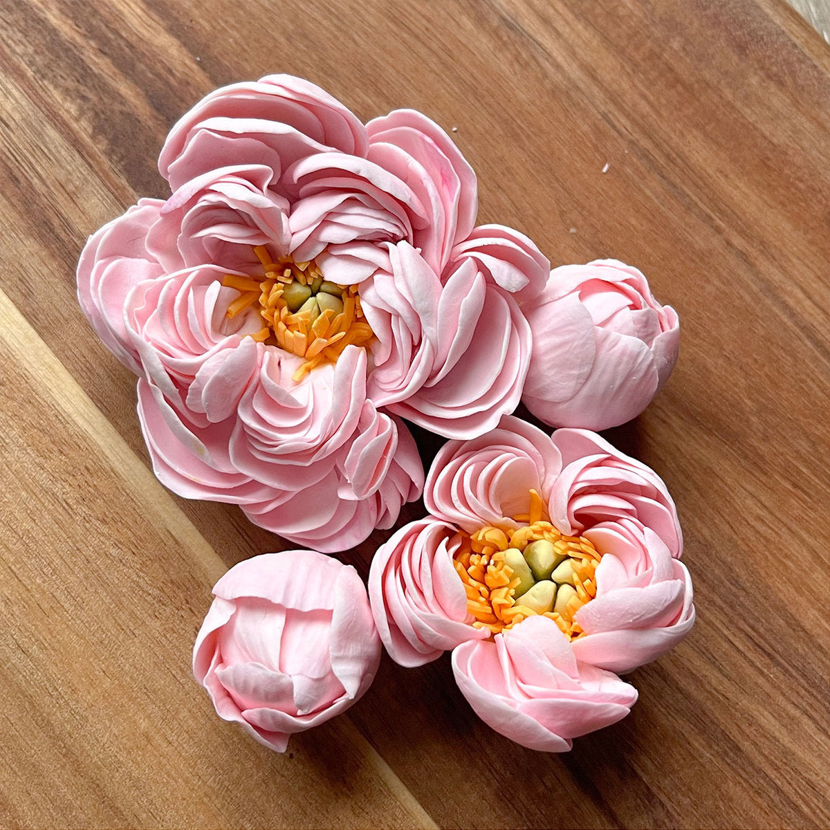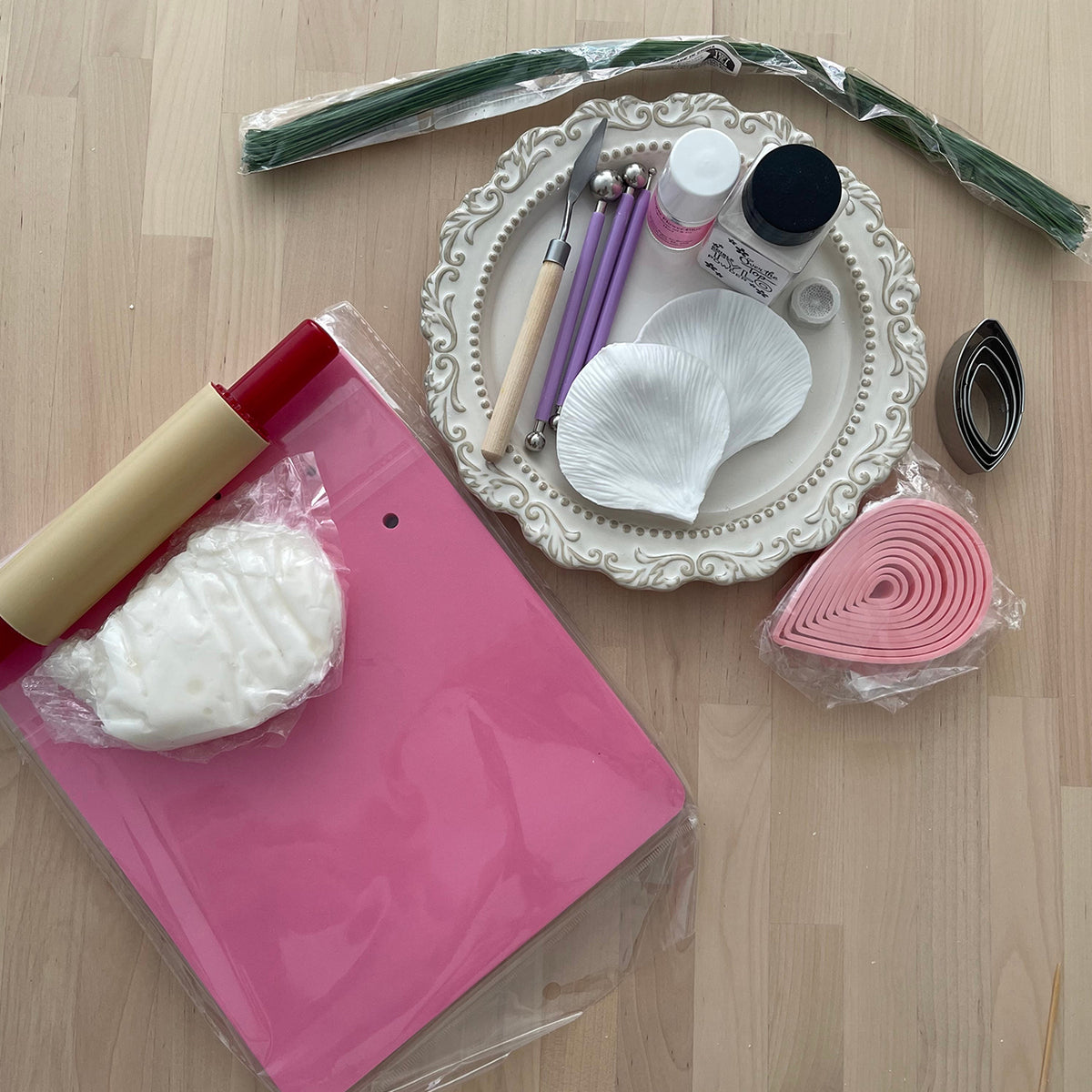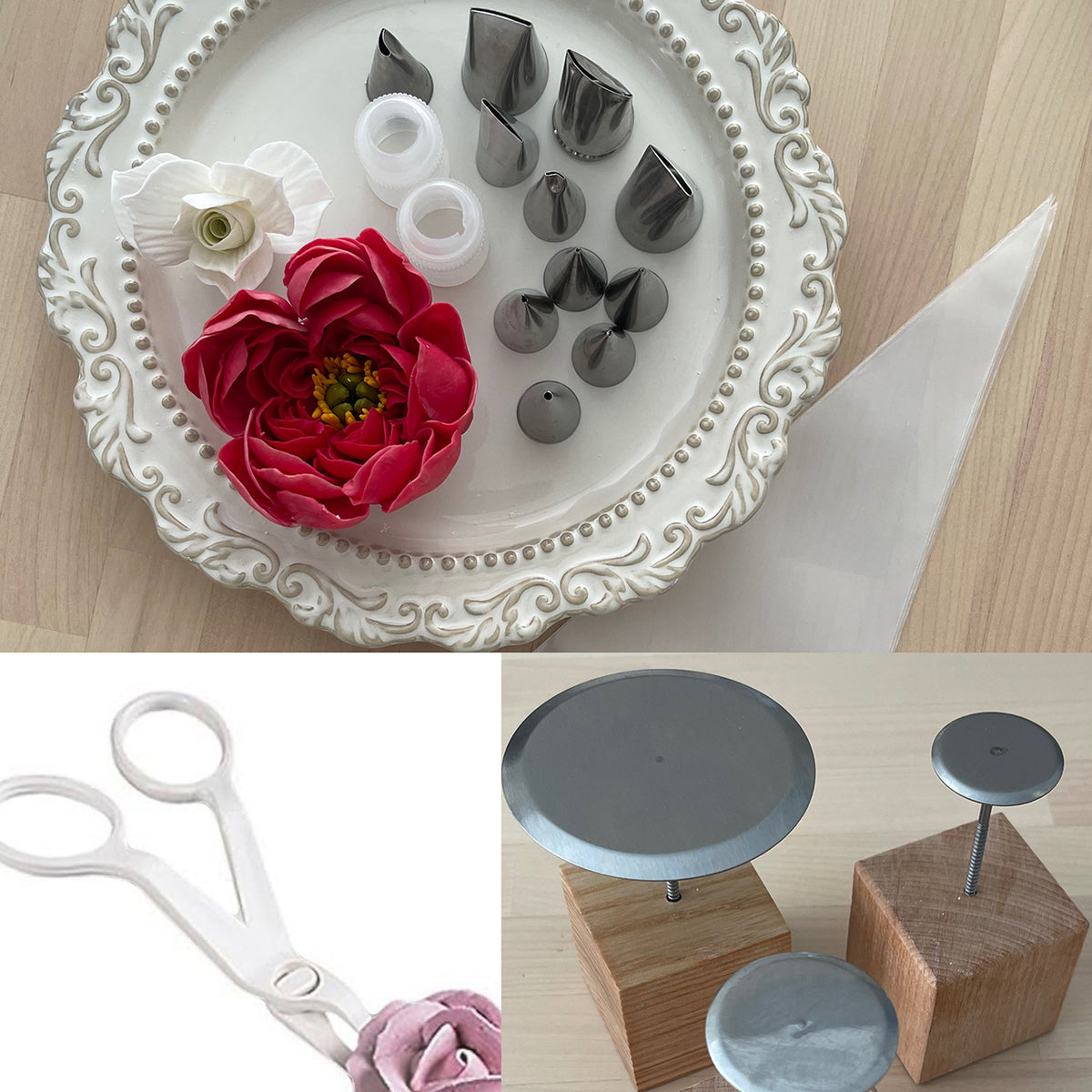 You can buy the ready made sugar flowers for cake toppers, includes leaves, stick and small flowerfor fillings. It’s a breeze if you need a quick touch ups for your cake… guarantee no mess and no stress.Or else, you can browse the tools and the ingredients needed to make sugar paste and buttercreamflowers in here. We also accept custom order. Just drop us an email. thank you!